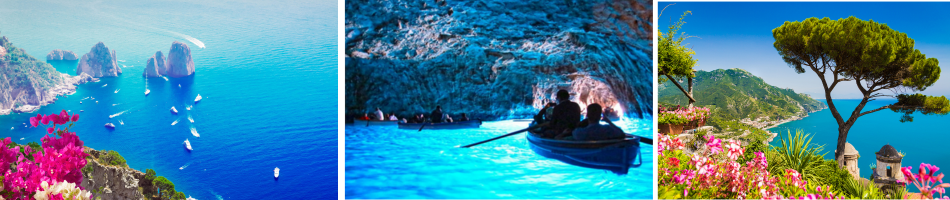 【卡布里島Isola di Capri】位在拿坡里南方,由石灰岩山丘、檸檬樹、九重葛所構築成的迷人島嶼,碧藍海水環繞四周,素有「地中海之珠」美譽。深受古羅馬皇帝喜愛,因而在此大力興建渡假別墅,因此留下不少遺跡,透明的光線在空氣烘托下,將藍白天空對比顯得格外耀眼。
